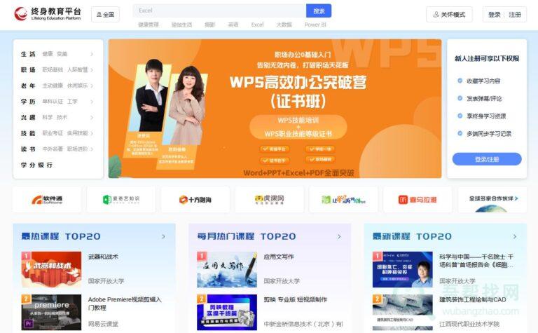 这个网站是终身学习教育平台。它是国家开…