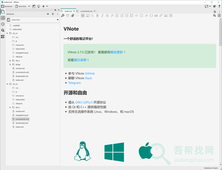 VNote是一个舒适的markdown笔记工具,始于…