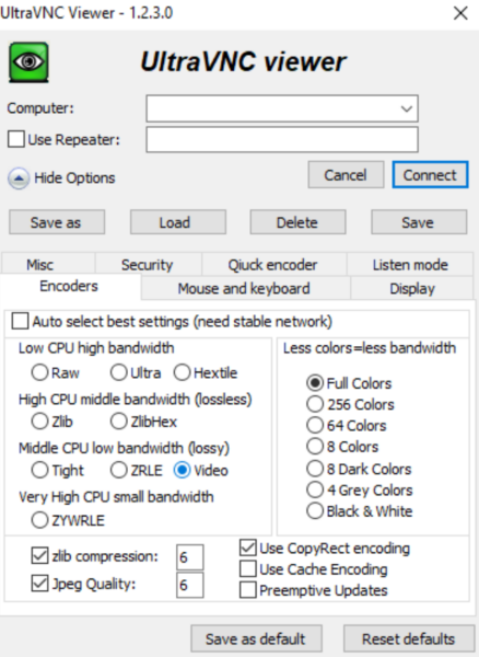 - 编码选项:它提供了多种编码选项,例如Tight编码、ZRLE(Zlib Run-Length Encoding)编码等,可以根据网络环境和带宽进行优化配置。